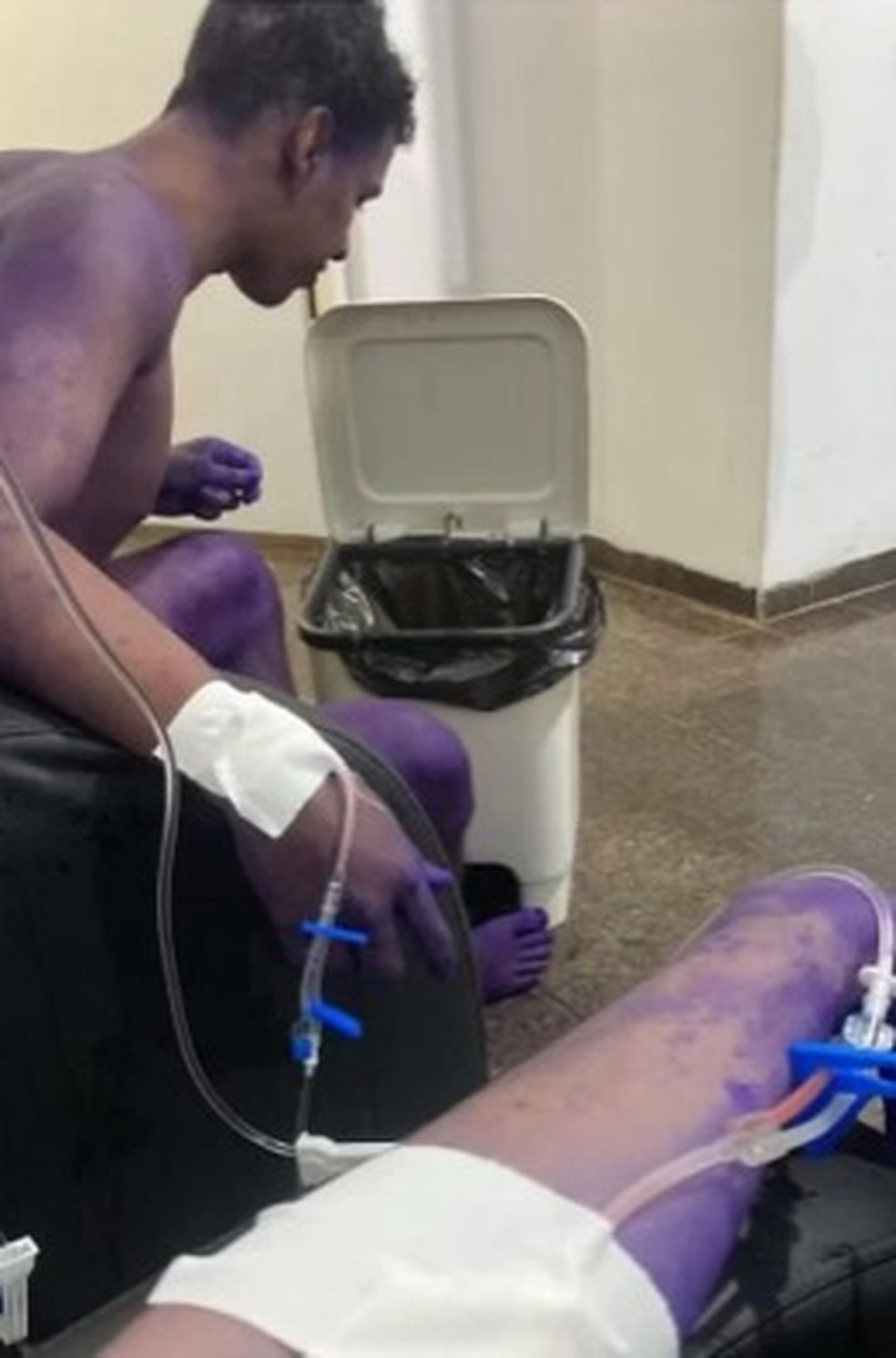 Momento em que os calouros foram expostos ao remédio — Foto: ReproduçãoO remédio utilizado contém Creolina, um conhecido spray roxo considerado perigoso até para os animais. O produto pode causar lesões gravíssimas nos rins e fígado destes animais, queimaduras extensas na pele, lesão nos pulmões, vômito, diarreia com sangue e até mesmo convulsões.